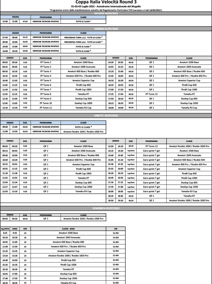 Il weekend del 1-2-3 Luglio è dedicato a tutti gli appassionati di motociclismo con il terzo round della Coppa Italia.