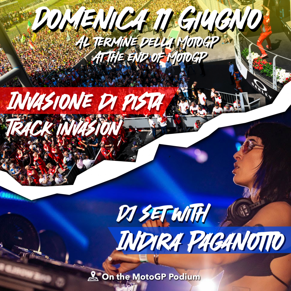 Da sempre l’appuntamento dei tifosi è sul rettilineo di partenza per applaudire i campioni. Quest’anno però la festa sarà davvero speciale perché, suonato l’inno, con il podio ancora profumato di champagne, la tribù della MotoGP inizierà a ballare sulle note della famosa DJ Indira Paganotto.