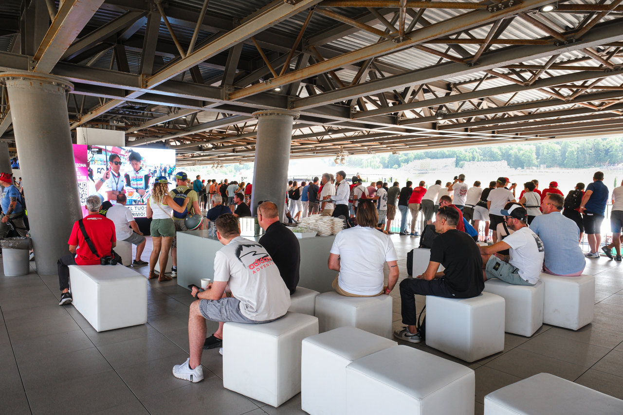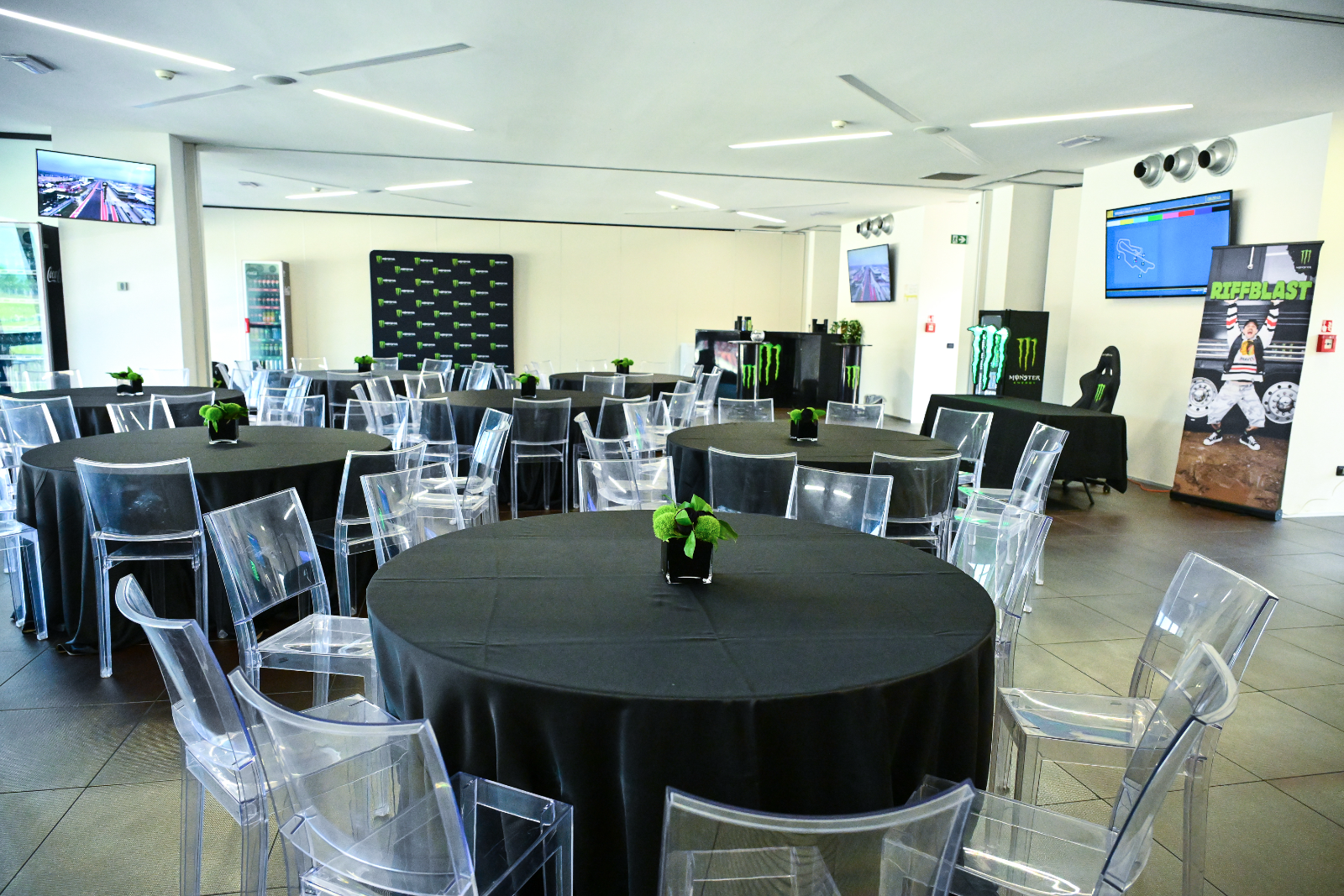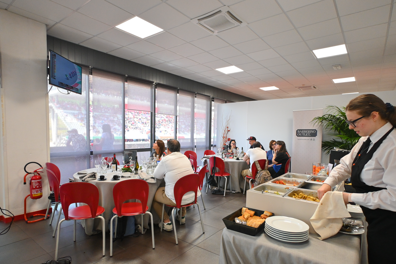 Al primo piano della palazzina sono, invece, dislocate ventitre salette che variano da 35 a 80 metri quadri: dotate di plasma e tv, sistema di condizionamento-riscaldamento, sono situate sopra la linea di partenza. Vip lounges e salette possono essere affittate sia per una singola manifestazione che per un'intera stagione.