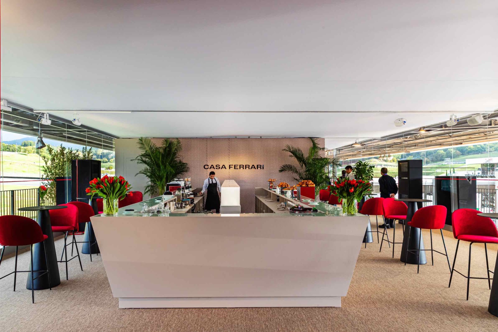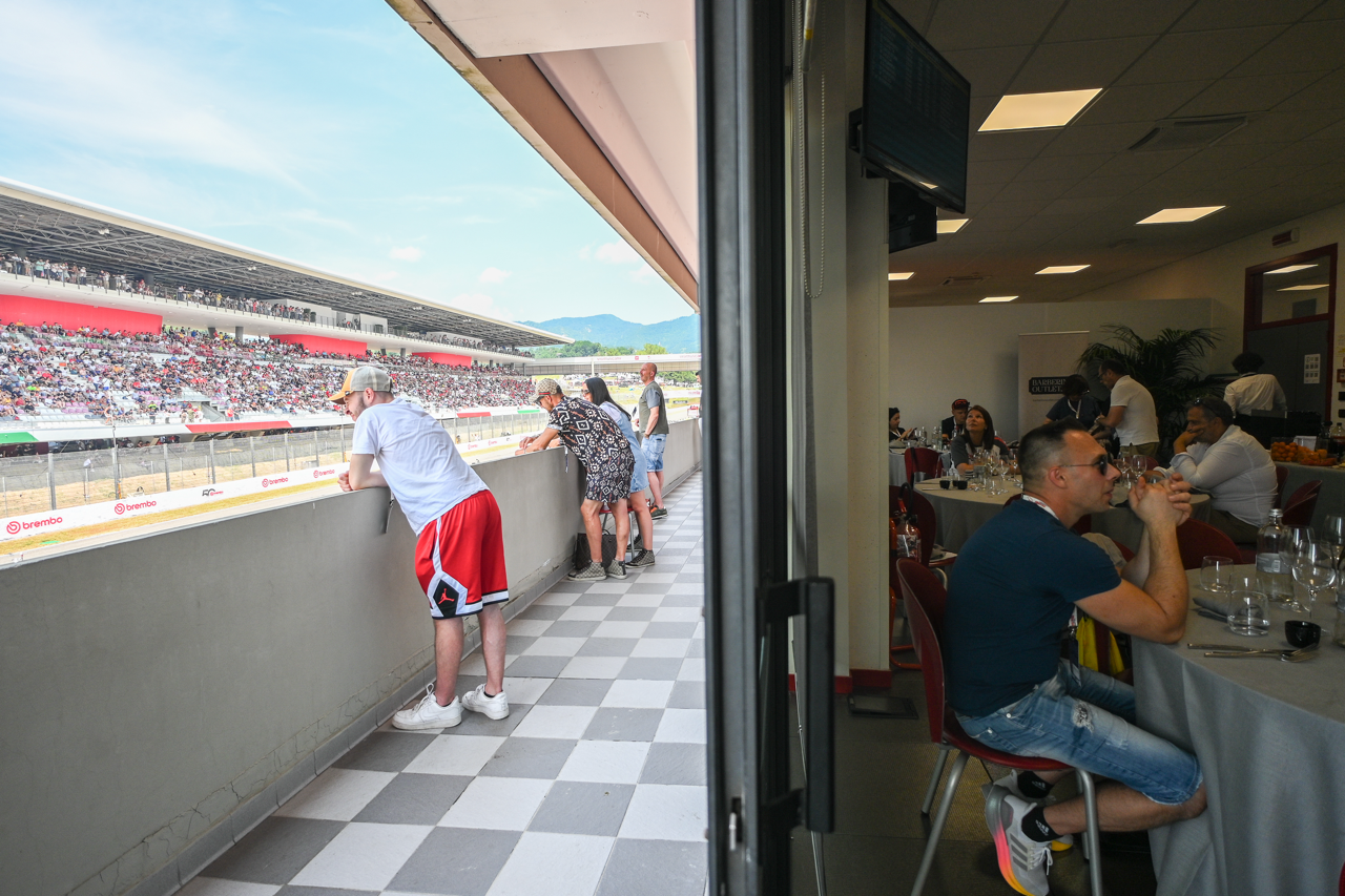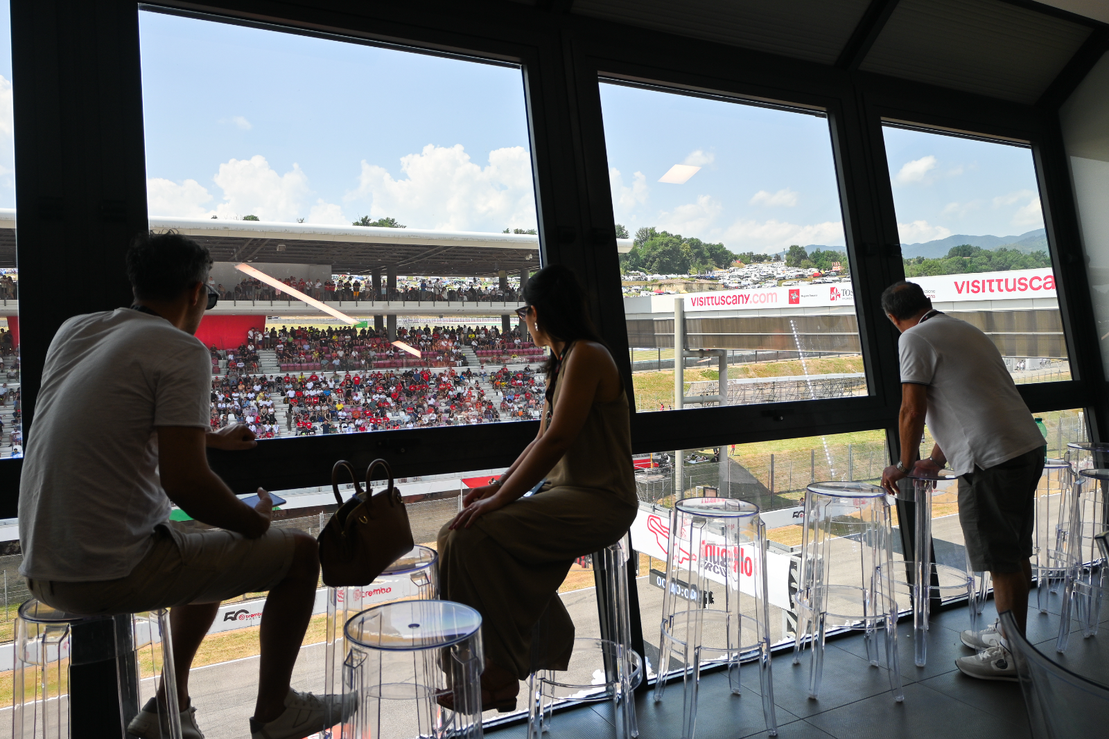 Al loro interno un angolo relax con divani  linea Frau (1 divano due posti, 2 poltrone, 1 pouff), 1 monitor 50'' a parete, 1 monitor 42'' su piedistallo acciaio satinato, impianto condizionamento/riscaldamento, servizi igienici riservati. Le stesse hanno vista panoramica su pit lane e pista tramite una vetrata; l'accesso al piano avviene attraverso ascensore panoramico a vetri o dalla torre scale.