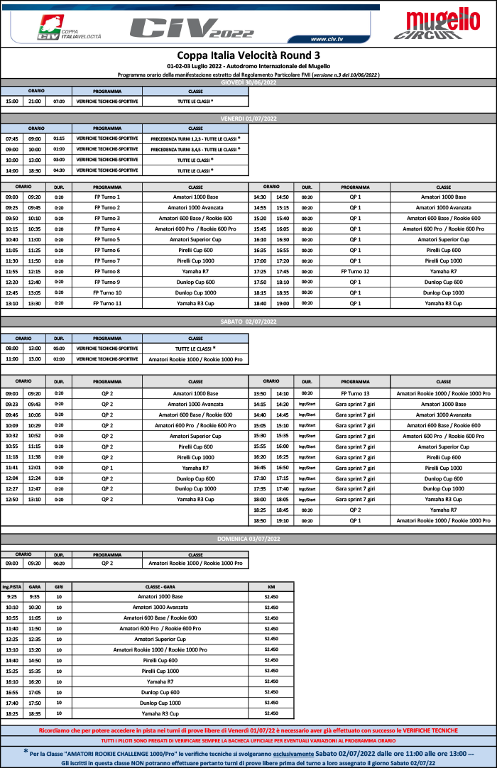 Il weekend del 1-2-3 Luglio è dedicato a tutti gli appassionati di motociclismo con il terzo round della Coppa Italia.